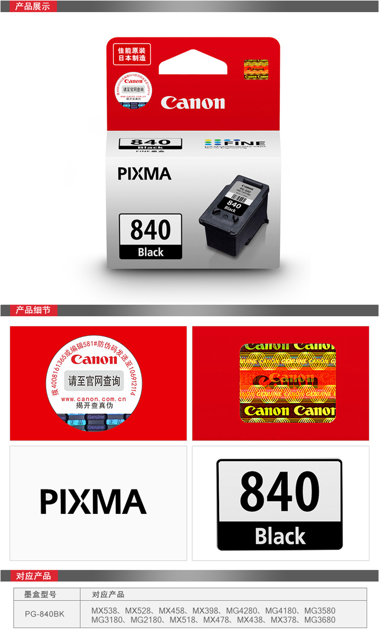 MX538、MX528、MX458、MX398、MX518、MX478、MX438、MX378、MG4280、MG4180、MG3680、MG3580、MG3180、MG2180